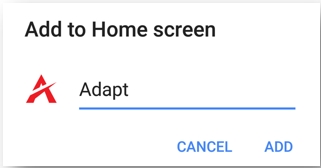 - Name the Shortcut and click Add. An Adapt Tile should appear on the mobile device’s Home page. Select the icon to open mobile access to Adapt.