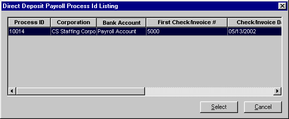 Process ID: The unique number identifying the direct deposit process