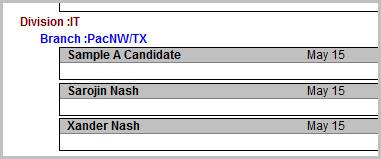 - The Branch and Division are additional criteria options to further filter the report results. These options will match the candidate.