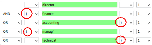 If you are entering multiple search terms to find a broad range of entities, you will need to enter brackets around each distinct group.