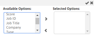If the Selected Options area is empty, then the Default columns (see above) display. If only some columns are in the Selected Options area, those are the only options that will display in the widget. If you want to display all columns, move all Available Options to the Selected Options area. Columns display in the order in which they are listed in the Selected Options area. When the columns are in the places you want, click the small checkmark in the upper right corner (clicking the “x” closes the window without saving your column selections.